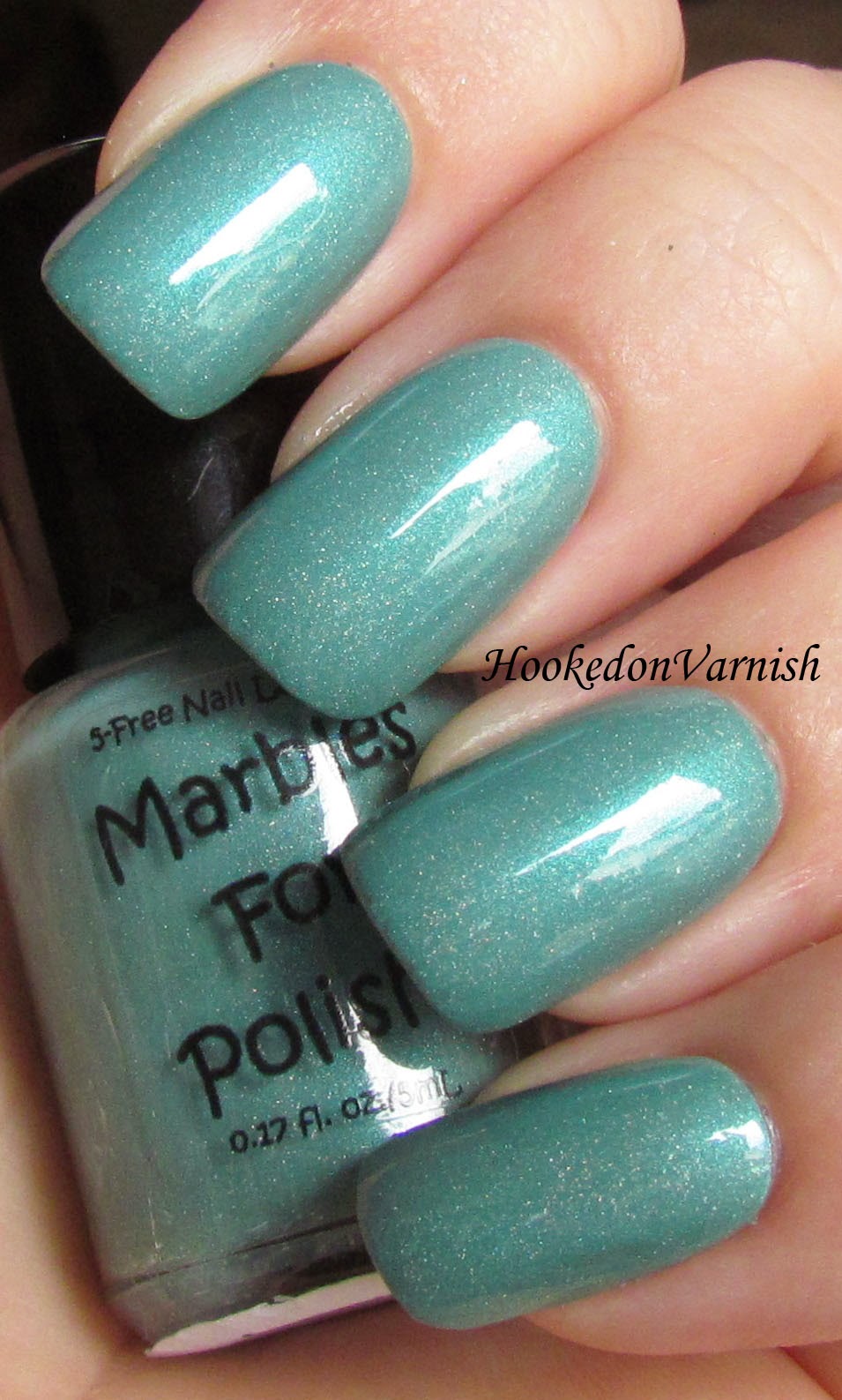 And lastly we have the color that had been put up for a naming contest on the Marbles For Polish ! FB page, and the winning name is Mermaid Summer! Such a fitting name. This one is a teal with holo shimmer in it. Very pretty color, I loved it so much while swatching it that I went ahead and did a full mani and wore it for 3 days! I used 3 coats again, with no application issues.